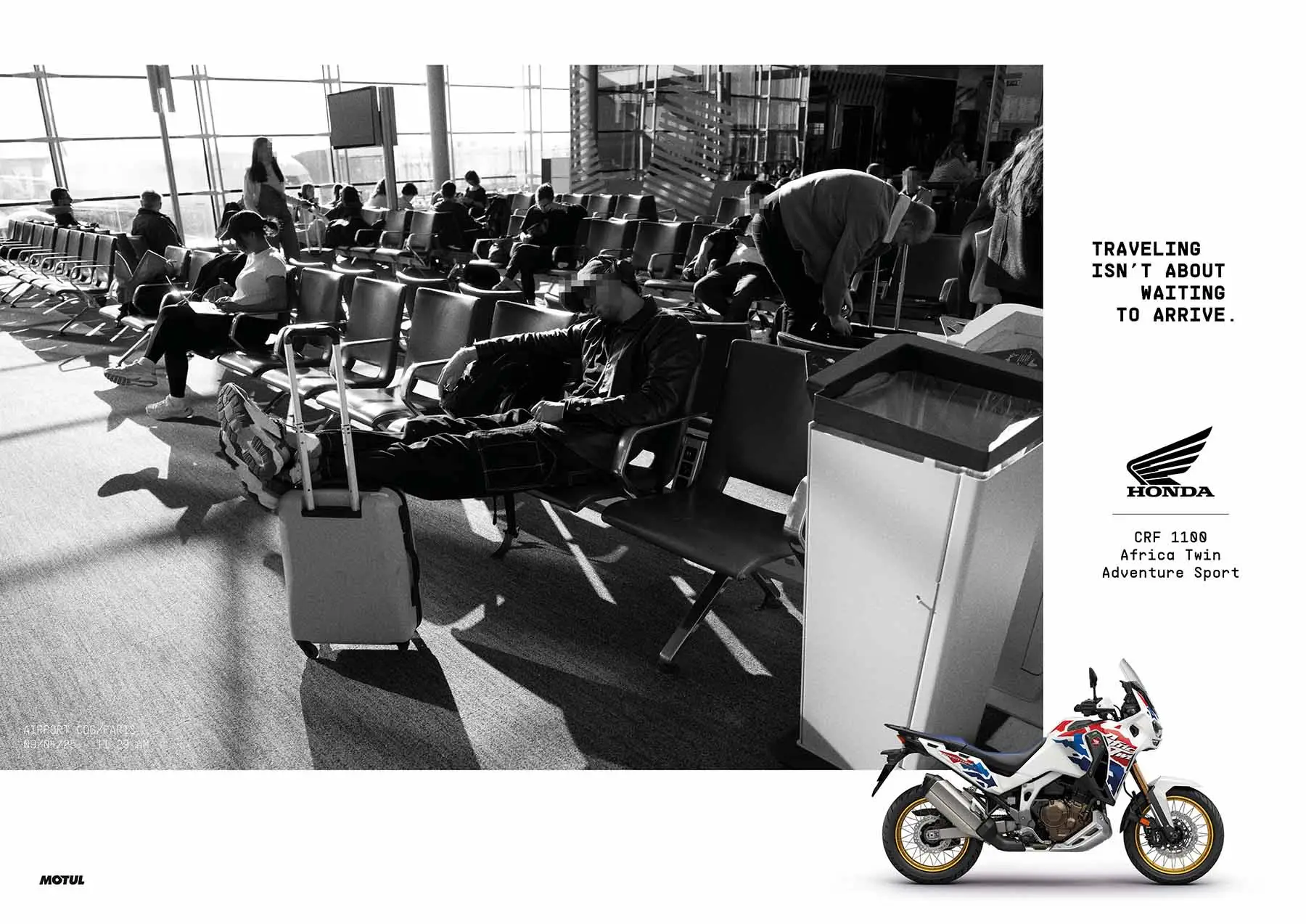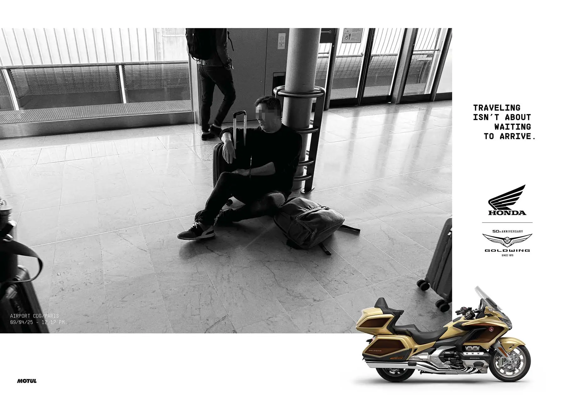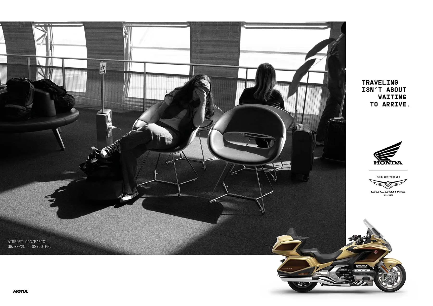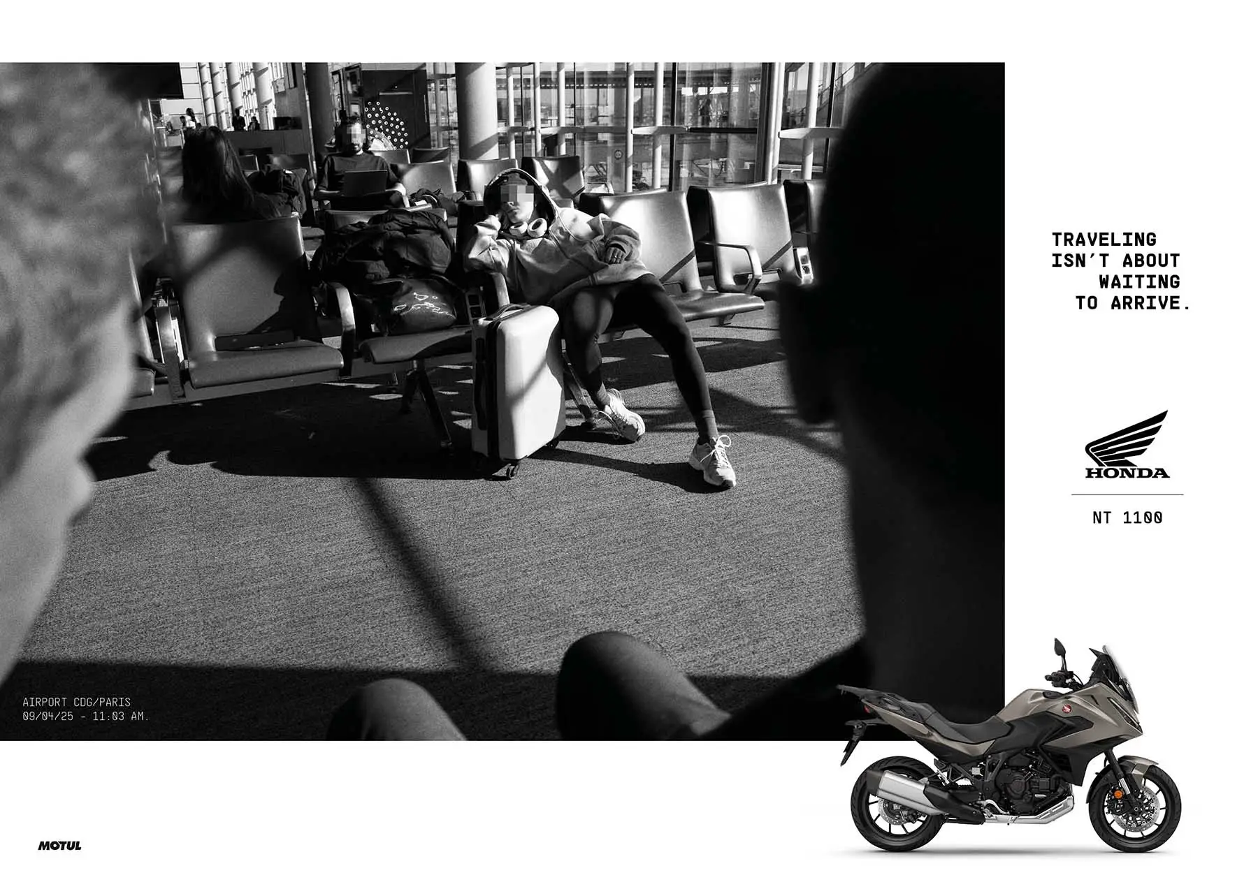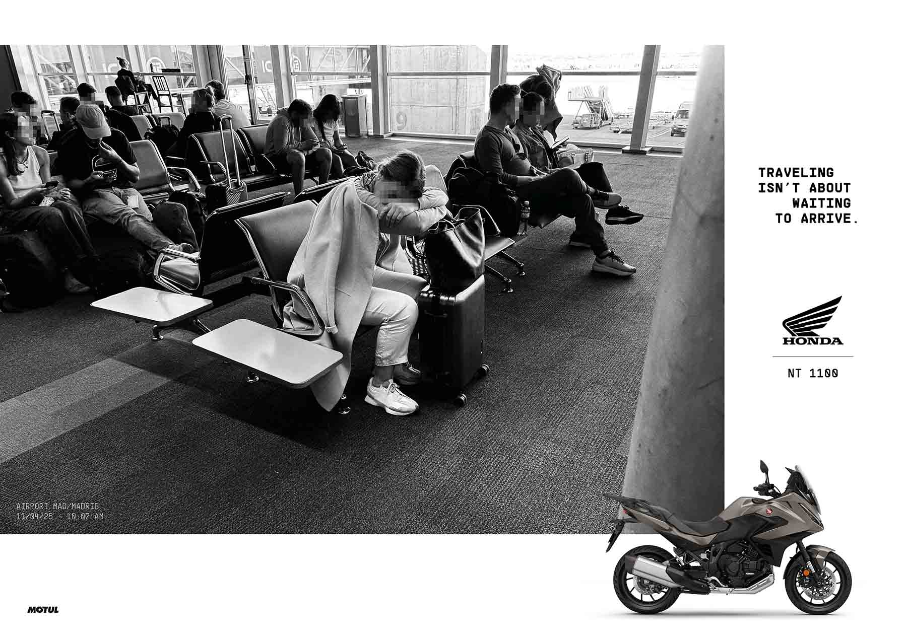 Instead of selling an idyllic version of escape, Honda contrasted that passive waiting with the immediate freedom of two wheels. Whether it’s the Africa Twin, Gold Wing, or NT1100, every motorcycle becomes a symbol: the journey starts the moment you swing your leg over the saddle, not once you reach your destination.